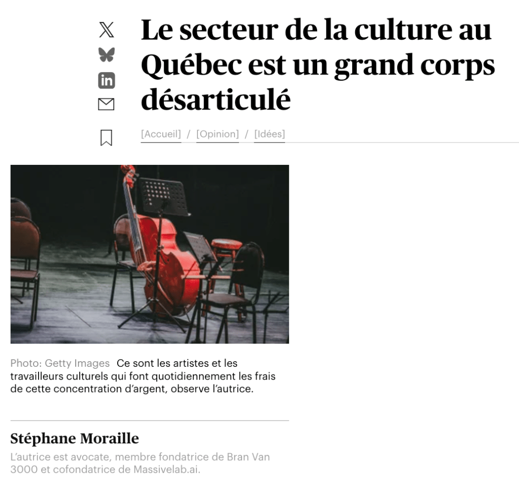 👉 Lire l’article ici : https://www.ledevoir.com/opinion/idees/846274/idees-secteur-culture-quebec-est-grand-corps-desarticule